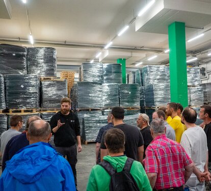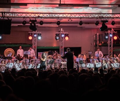 Vom Probelokal in die fast benachbarte Produktionshalle: 2017 war es die Musikkapelle Schabs, die an unserem Haupsitz – ebenfalls in Schabs – ihr Benefizkonzert zugunsten des Vereins Trotzdem Reden spielte.